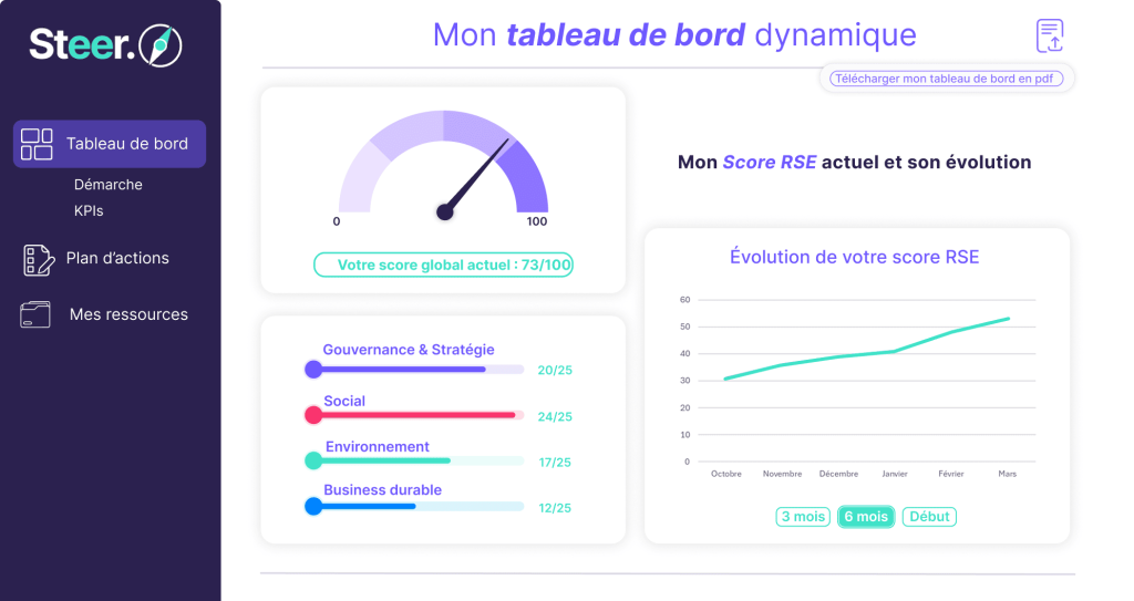 Notre plateforme centralisée rassemble toutes vos missions, ressources et outils – pilotage RSE, bilan carbone, enquête collaborateur – pour passer du diagnostic à l’impact.